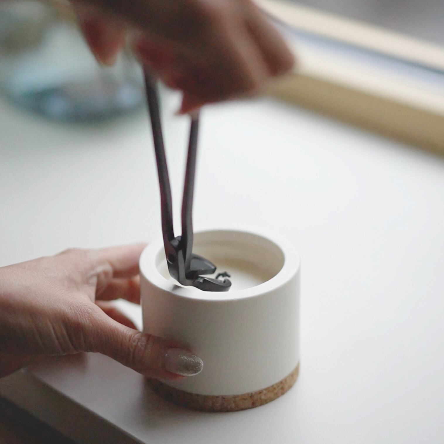 通常のハサミでもカットいただけますが、黒くなった芯のすすがハサミに付着しますので専用のハサミを1本お持ちだと便利です。